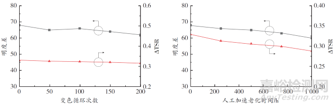 2. 3 填料復(fù)配熱致可逆變色涂層的循環(huán)耐久性