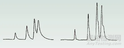 如果僅部分解析兩個(gè)峰形,則可能會(huì)認(rèn)為其是裂峰或雙峰。如圖3顯示的情形。