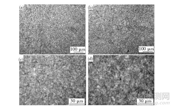 (a)Q3試樣的晶粒度;(b)Q9試樣的晶粒度;(c)Q3試樣的金相組織;(d)Q5試樣的金相組織