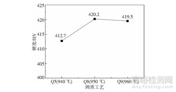 Fig.4 Hardness change at different quenching temperatures