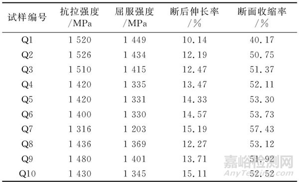 本課題的研究目標是要求螺栓強度達到14.9級,即抗拉強度達到1400 MPa以上。通過對比不同調質工藝下的試驗結果,發(fā)現Q3試樣的抗拉強度為1 510 MPa;Q10試樣在延長了奧氏體化保溫時間和回火保溫時間后,抗拉強度為1430 MPa,且Q10試樣的塑韌性比Q3試樣的好。因此14.9級汽車緊固件用鋼42CrMoVNb的最佳調質工藝為Q3和Q10。