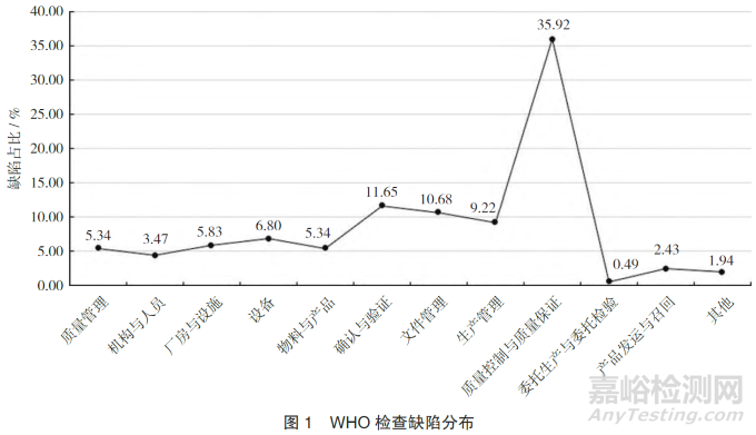 WHO PQ 檢查覆蓋GMP 各要素,檢查缺陷中對(duì)檢查過(guò)程中發(fā)現(xiàn)的所有問(wèn)題都進(jìn)行相對(duì)詳細(xì)的描述,每次檢查提出約15 ~ 20 項(xiàng)缺陷[11]。檢查還會(huì)對(duì)上次檢查的缺陷整改情況進(jìn)行跟蹤。
