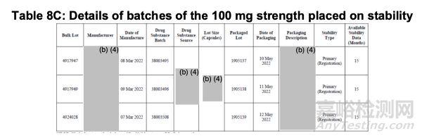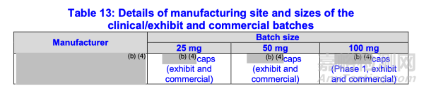 采用單一場地生產(chǎn)了三種規(guī)格的TBM批次(附錄1:表14)。TBM產(chǎn)品100 mg規(guī)格已開展I期研究。因此,無需進(jìn)行生產(chǎn)場地橋接。