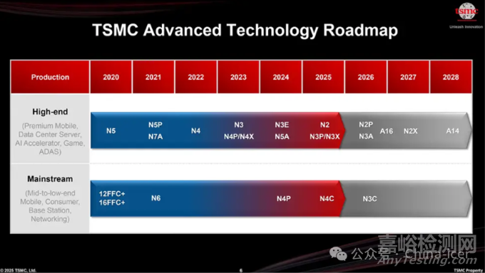 在半導(dǎo)體行業(yè),每一次制程工藝的突破都如同一場(chǎng)科技革命,不僅重新定義了芯片性能的邊界,更為電子設(shè)備的智能化、高效能運(yùn)算等領(lǐng)域注入了強(qiáng)大的活力。2025年4月24日,TSMC在美國(guó)舉辦的2025年技術(shù)研討會(huì)上正式宣布其A14工藝將于2028年量產(chǎn)的消息。這一技術(shù)突破標(biāo)志著全球半導(dǎo)體行業(yè)正式邁入1.4nm時(shí)代,HPC和AI領(lǐng)域產(chǎn)生了深遠(yuǎn)影響,同時(shí)也對(duì)大陸算力芯片和車規(guī)芯片產(chǎn)業(yè)帶來了巨大的挑戰(zhàn)與機(jī)遇。