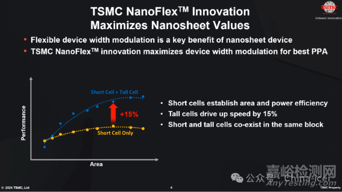 TSMC A14工藝采用第二代GAAFET晶體管技術(shù),相較于傳統(tǒng)的FinFET晶體管,在性能和功耗方面有顯著優(yōu)勢(shì)。GAAFET能夠更好地控制leakage,提高晶體管的開關(guān)速度和性能,nanosheet的設(shè)計(jì)使得電流控制更加精細(xì),從而實(shí)現(xiàn)更高的性能和更低的功耗。