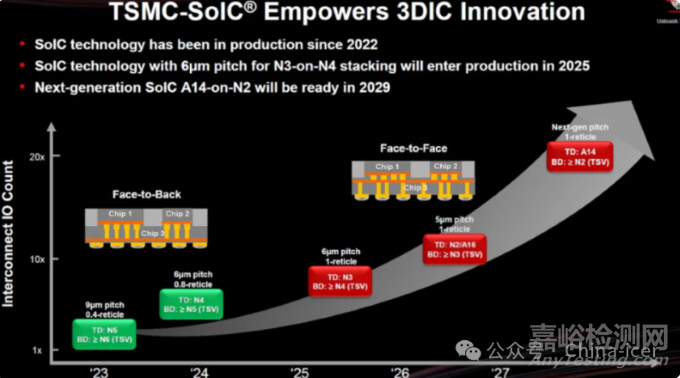 臺(tái)積電正在繼續(xù)推進(jìn)其CoWoS(Chip on Wafer on Substrate)技術(shù),以滿足AI對(duì)更多邏輯和HBM持續(xù)增長(zhǎng)的需求。比如,計(jì)劃在2027年量產(chǎn)9.5倍光罩尺寸的CoWoS,進(jìn)而能夠以TSMC先進(jìn)邏輯技術(shù)將12個(gè)或更多的HBM堆疊整合到一個(gè)封裝中。
