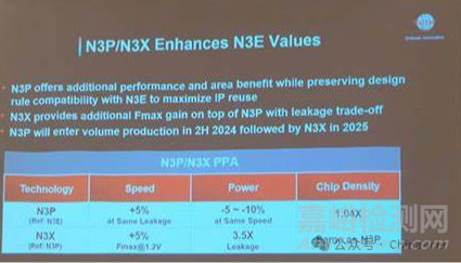 TSMC透露其在2024年第四季度開始生產(chǎn)基于性能增強(qiáng)型N3P(第三代3nm級(jí))工藝技術(shù)的芯片。N3X芯片預(yù)計(jì)將于2025年下半年量產(chǎn)。與N3P相比,N3X有望在相同功率下將最大性能提高5%,或在相同頻率下將功耗降低7%,并支持高達(dá)1.2V的電壓。TSMC在不同領(lǐng)域的技術(shù)布局體現(xiàn)了其對(duì)半導(dǎo)體行業(yè)多領(lǐng)域發(fā)展趨勢(shì)的精準(zhǔn)把握。N4CRF射頻技術(shù)、N3A技術(shù)以及N4e工藝等的應(yīng)用,覆蓋了智能手機(jī)、汽車電子和IoT等多個(gè)重要領(lǐng)域。