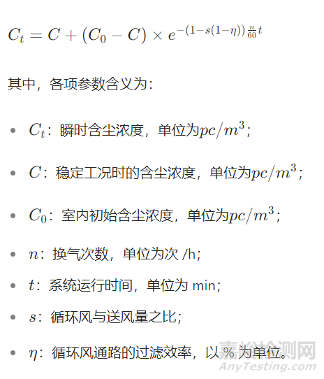 基于均勻分布理論,潔凈室瞬時含塵濃度的理論公式如下: