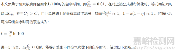 需要注意的是,在實際測試過程中所測得的自凈時間,可能會與上述理論計算結(jié)果存在一定偏差。這是因為理論計算公式構(gòu)建于均勻分布理論之上,而在現(xiàn)實的潔凈室環(huán)境中,氣流組織狀況難以達到使室內(nèi)顆粒物完全均勻分布的理想狀態(tài)。