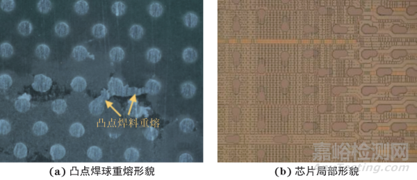 圖6 芯片凸點焊球重熔微觀形貌與芯片局部形貌