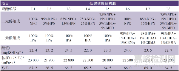 表1 高/低酸值聚酯樹(shù)脂的基礎(chǔ)配方