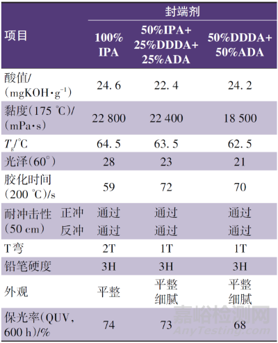 2. 3 封端劑對(duì)低酸值聚酯樹(shù)脂及涂膜性能的影響