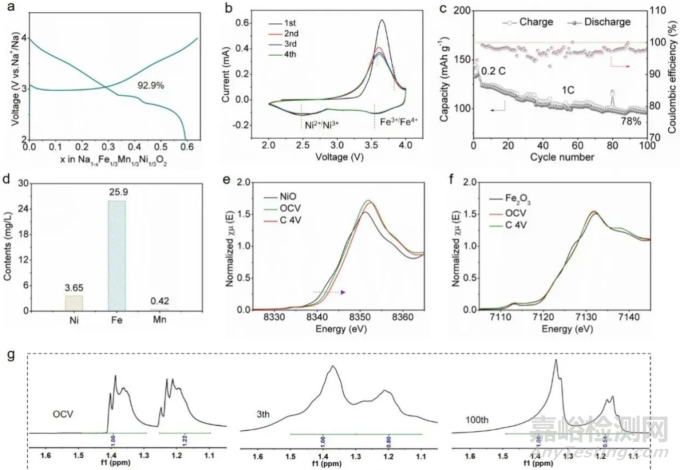 圖1. NFMNO的電化學(xué)性能及電解液的演變