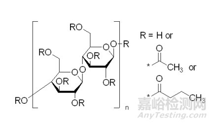 醋酸丁酸纖維素,分子式為C?H?O? (OCOCH?)? (OCOC?H?)? (OH)?????,簡(jiǎn)稱CAB。可用己酸或丁酸處理纖維素,然后用乙酸、乙酐、丁酸、丁酸酐的混合液在硫酸催化作用下進(jìn)行酯化而制得。