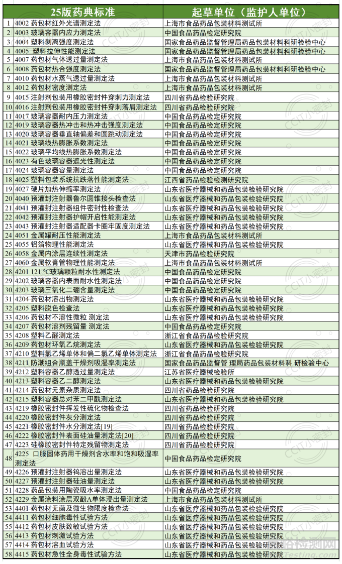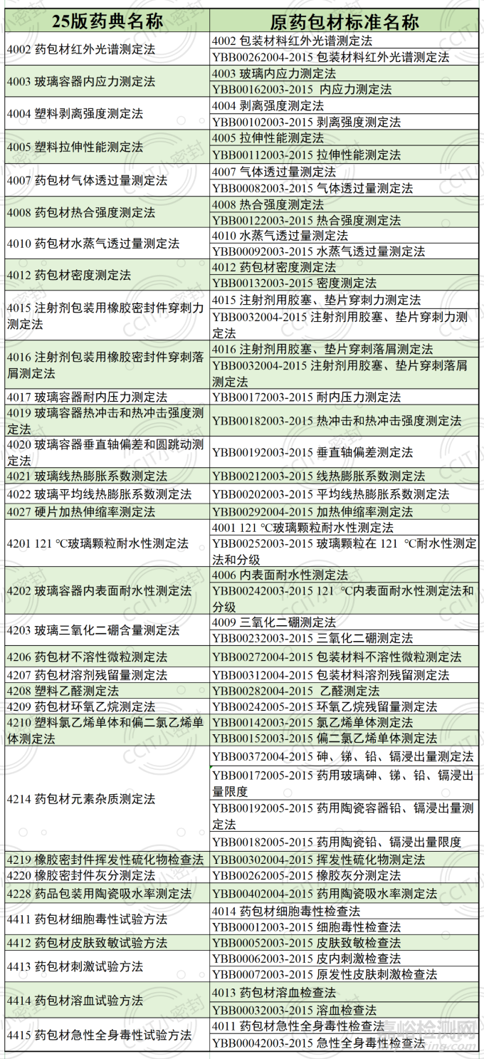 2025年版《中國藥典》與原藥包材通用檢測方法對照