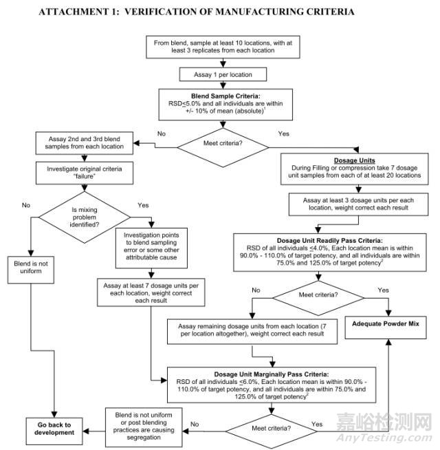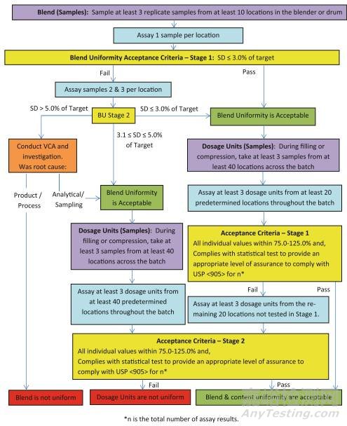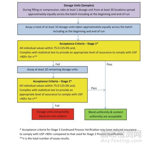 2013年ISPE(International Society for Pharmaceutical Engineering)年會(huì)上,多名FDA、知名藥企及USP相關(guān)專(zhuān)家提出對(duì)同年8月份撤銷(xiāo)的指導(dǎo)原則結(jié)合USP<905>提出修改意見(jiàn),旨在提供一種適用于傳統(tǒng)和現(xiàn)代(PAT)都適用的取樣和分析方法。其具體流程圖如下: