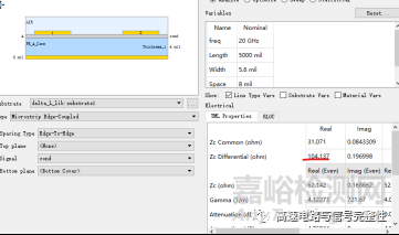 我們發(fā)現(xiàn)阻抗從104逐漸增加到107了,增加了3歐姆。那這段差分線的阻抗到底是多少呢?104還是107還是兩者取平均?我們先用ADS自帶的CILD來計算一下,如下圖,差分阻抗是104.13歐姆。