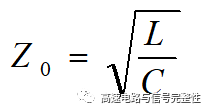 Z是RLGC的函數(shù)。在頻率比較高的時候,虛部jwl和jwc占據(jù)主導(dǎo),遠(yuǎn)遠(yuǎn)大于實部的R和G,因此,Z最終可以化簡為下圖2的公式。