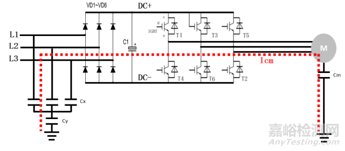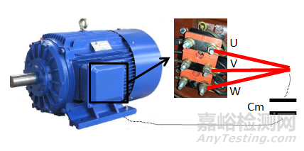 分布電容:以電機繞組與機殼地分布電容Cm為主,其他分布電容未畫出。