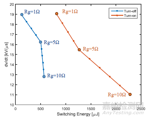 在實際產(chǎn)品設(shè)計中要權(quán)衡dv/dt與損耗的關(guān)系,驅(qū)動參數(shù)越大,turn on/off時間越長,帶來損耗越大需要更大的散熱成本。