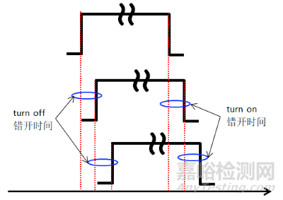 邊沿交錯控制的本質(zhì)是增大各個管子開通關(guān)斷的時間間隔,使得各個電壓波形邊沿不重疊,降低dv/dt,從而減小干擾。