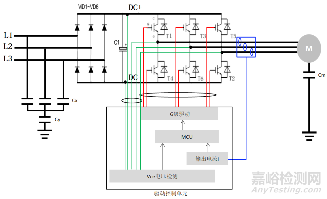 PWM控制型IGBT工作在斬波模式,使得IGBT本身自帶干擾源屬性,自擾與互擾系統(tǒng)中的其他設(shè)備。隨著近幾年功率半導(dǎo)體器件的發(fā)展,像SIC、GAN等半導(dǎo)體器件的出現(xiàn),提升開關(guān)速率降低了損耗,但卻帶來了EMI的巨大挑戰(zhàn)。以三相AC380V輸入驅(qū)動器的輕載低頻運行為例,其整流母線電壓為DC513V左右,Vce的turn on/off時間達(dá)到了ns級,產(chǎn)生dv/dt約為幾KV/us ~幾十KV/us,dv/dt在回路中產(chǎn)生的共模噪聲電流為幾十A甚至100A以上,嚴(yán)重干擾周圍設(shè)備,僅從路徑上去抑制,需要付出巨大的濾波成本,所以IGBT的EMI抑制一直是業(yè)界的關(guān)注點。