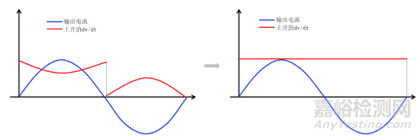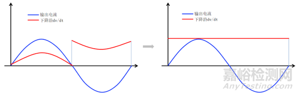 ◆下降沿的dv/dt在電流負(fù)半周內(nèi)隨電流絕對值變大逐漸變小,電流絕對值最大時dv/dt最?。?/span>