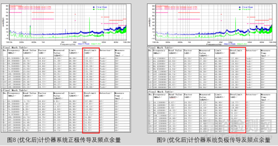 通過(guò)專(zhuān)業(yè)設(shè)備并按照GB/T 18655-2010規(guī)定的測(cè)試標(biāo)準(zhǔn)對(duì)該計(jì)價(jià)器系統(tǒng)進(jìn)行EMC測(cè)試,測(cè)試結(jié)果如右圖所示;