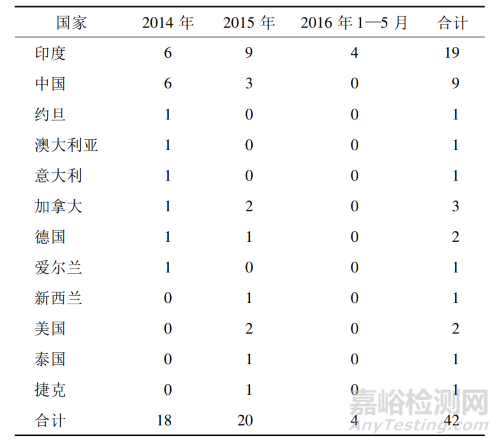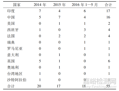 從表3 可以看出,F(xiàn)DA 在 2014 年 1 月—2016年 5 月期間共簽發(fā)了 42 封警告信,其中,19 封發(fā)給了印度制藥企業(yè),占總量的 45% ,9 封發(fā)給了中國(guó)的制藥企業(yè),占總量的 21% 。另外,2016 年 1—5 月FDA 簽發(fā)了 4 封警告信,全是給印度企業(yè),可以看出 FDA 對(duì)印度企業(yè)的監(jiān)管力度很強(qiáng)。由于中國(guó)和印度同為仿制藥生產(chǎn)大國(guó),可以預(yù)見 FDA 對(duì)中國(guó)制藥企業(yè)的監(jiān)管力度會(huì)進(jìn)一步加強(qiáng)。
