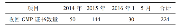 [16] CFDA. 2015 年全國(guó)收回藥品 GMP 證書情況統(tǒng)計(jì)[EB /OL].( 2015 - 12 - 25 ) . http: / /www. sda. gov. cn /WS01 /CL1760 /139418. html.