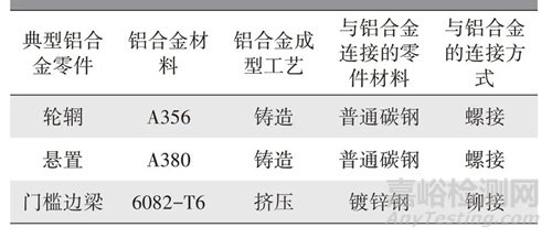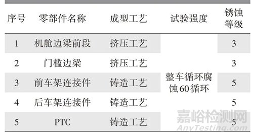 c. 方案3 為不同成型工藝(擠壓、鑄造)鋁合金的整車強化腐蝕試驗。