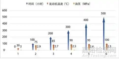 在試驗(yàn)過程中數(shù)據(jù)的采集需要涵蓋車輛各個(gè)關(guān)鍵部件的運(yùn)行狀態(tài),包括發(fā)動(dòng)機(jī)、傳動(dòng)系統(tǒng)、電子控制單元、底盤系統(tǒng)、車身結(jié)構(gòu)等來保證可以全面監(jiān)測整車的性能變化。可靠性試驗(yàn)過程中,數(shù)據(jù)采集系統(tǒng)需要能夠?qū)崟r(shí)記錄各項(xiàng)指標(biāo)的變化情況,如發(fā)動(dòng)機(jī)溫度、輪胎磨損、電子系統(tǒng)的工作狀態(tài)、油壓變化等,這些數(shù)據(jù)將在試驗(yàn)結(jié)束后進(jìn)行詳細(xì)分析,結(jié)合整車的運(yùn)行工況,評(píng)估車輛在不同使用階段可能出現(xiàn)的故障點(diǎn)與性能退化情況。數(shù)據(jù)采集的精度要求非常高,任何數(shù)據(jù)誤差都可能導(dǎo)致對(duì)整車可靠性評(píng)估的不準(zhǔn)確,所以試驗(yàn)過程中需要對(duì)采集系統(tǒng)進(jìn)行定期校驗(yàn)來確保各項(xiàng)儀器設(shè)備的正常運(yùn)行。數(shù)據(jù)分析是對(duì)采集數(shù)據(jù)的深入挖掘過程,常用的方法包括統(tǒng)計(jì)分析、回歸分析、故障模式分析等,數(shù)據(jù)分析結(jié)果會(huì)提供重要的決策依據(jù),指導(dǎo)后續(xù)的設(shè)計(jì)優(yōu)化與質(zhì)量改進(jìn)[4]。在進(jìn)行加速壽命試驗(yàn)時(shí),測試過程中采集到以下圖1發(fā)動(dòng)機(jī)溫度與油壓的相關(guān)數(shù)據(jù)。