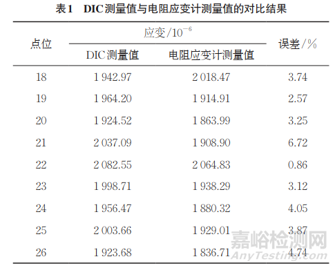 3.1 DIC測量值與電阻應(yīng)變計測量值對比