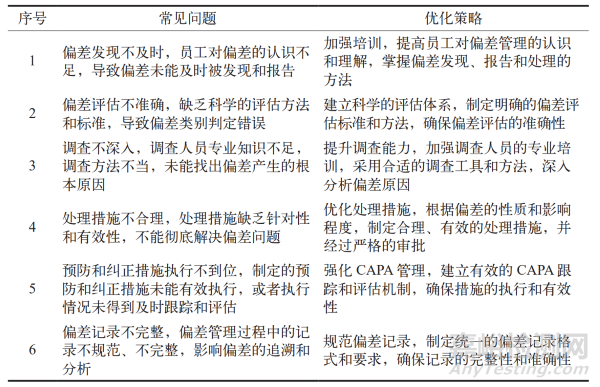 表1 偏差管理中常見(jiàn)的問(wèn)題及其應(yīng)對(duì)措施