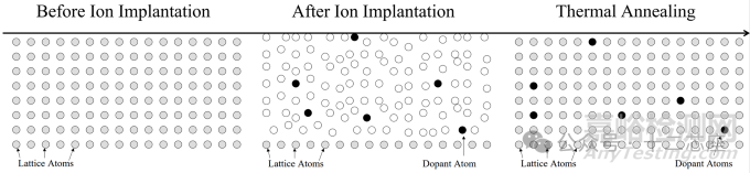 Silicon wafer 被注入高速、高能量的雜質(zhì)時(shí),硅晶體結(jié)構(gòu)將會(huì)遭受破壞,形成非晶質(zhì)化。非晶質(zhì)化會(huì)降低電子和空穴的移動(dòng)度,導(dǎo)致器件性能下降。此外,注入的雜質(zhì)原子會(huì)跑到晶格的間隙里,無法正常發(fā)揮作用去改變硅的導(dǎo)電性(無法成為摻雜劑)。