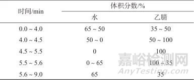 表1 梯度洗脫程序