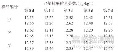 表6 60 ℃下短期穩(wěn)定性測定結(jié)果