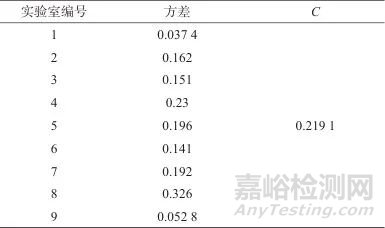 實驗室內(nèi)測定數(shù)據(jù)狄克遜檢驗結(jié)果表明,有3個檢驗數(shù)據(jù)大于臨界值f(0.05,6)=0.628,但該異常值在方法的精密度要求內(nèi),經(jīng)技術(shù)判斷,無需剔除。實驗室間測定數(shù)據(jù)和所有數(shù)據(jù)的格拉布斯檢驗結(jié)果中,各組數(shù)據(jù)的平均值及全部數(shù)據(jù)均無異常值剔除。