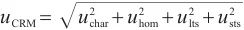 按照GB/T 15000.3—2023要求,標準樣品特性值的合成不確定度包括:定值的不確定度(uchar)、均勻性引入的不確定度(uhom)、短期穩(wěn)定性(usts)及長期穩(wěn)定性(ults)引入的不確定度,各分量不確定度信息見表12。