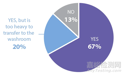圖 1 該調(diào)查表明,67% 的公司擁有可拆卸的膠塞,大約 33% 的公司的膠塞要么不可拆卸,要么過于沉重,無法拆卸下來進(jìn)行清洗。