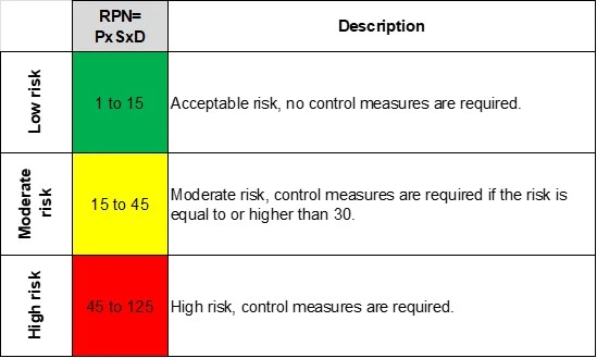 As defined in this example, an RPN=30 demands measures to be in place to control the risk such as: