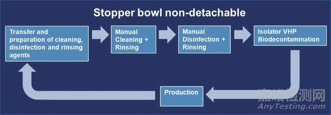 In this case, a manual cleaning and disinfection of the stopper bowl can be used as an alternative procedure. A typical lifecycle of the stopper bowl for this scenario can be seen in Figure 8.
