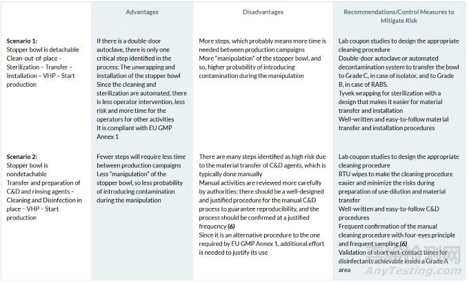 The risk-assessment exercise for both scenarios, involving detachable and nondetachable stopper bowls, aimed to identify the major challenges in each case and determine the best recommendations or control measures to mitigate contamination risks.
