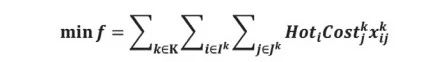 滿足業(yè)務(wù)約束的同時(shí),最小化叉車作業(yè)時(shí)間,同時(shí)增加藥品熱度懲罰項(xiàng)。