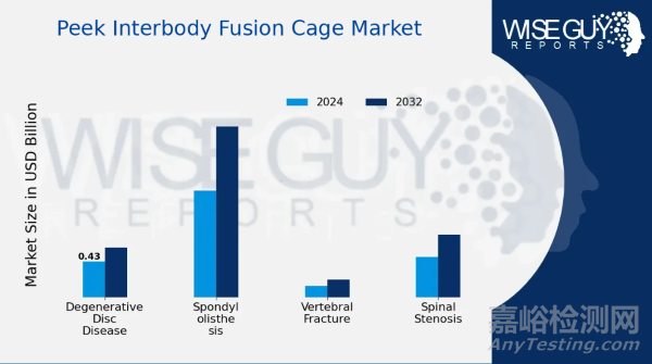 據(jù)wiseguyreports網(wǎng)站的全球Peek椎間融合器市場(chǎng)研究報(bào)告,2023年全球聚醚醚酮(PEEK)椎間融合器市場(chǎng)規(guī)模約22.2億美元,預(yù)計(jì)2024年達(dá)到23.5億美元,2032年將增至36.5億美元,年復(fù)合增長(zhǎng)率約5.68%。