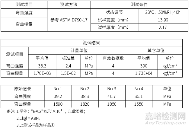 1.因標(biāo)準(zhǔn)的測(cè)試樣條厚度與產(chǎn)品厚度差異過(guò)大,故無(wú)法同原料數(shù)據(jù)進(jìn)行定性對(duì)比。兩種產(chǎn)品厚度較為接近,可以橫向?qū)Ρ葍烧叩南嚓P(guān)物性數(shù)據(jù);