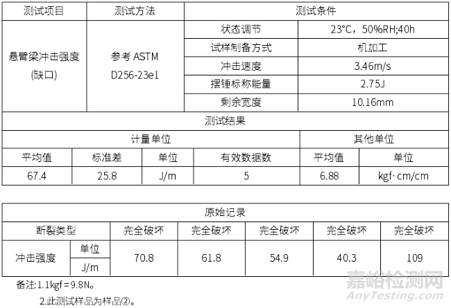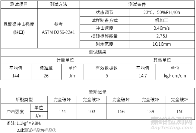 3.1.3 懸臂梁沖擊強(qiáng)度(缺口):