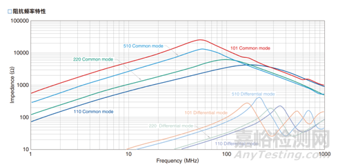 3.對(duì)共模干擾進(jìn)行抑制,最常用的就是用共模電感,目前端口部分的設(shè)計(jì)如圖6所示,目前已經(jīng)預(yù)留了共模電感,但是效果不是很好,可能的原因是需要27MHz阻抗更高的共模電感,我們分析元器件規(guī)格書圖7,發(fā)現(xiàn)對(duì)應(yīng)110型號(hào)在27MHz時(shí)共模阻抗是1000Ω,對(duì)應(yīng)頻段的101共模阻抗是16000Ω,選用101型號(hào)的共模電感重新進(jìn)行電流法測試,可以通過電流法測試,結(jié)果圖8所示。