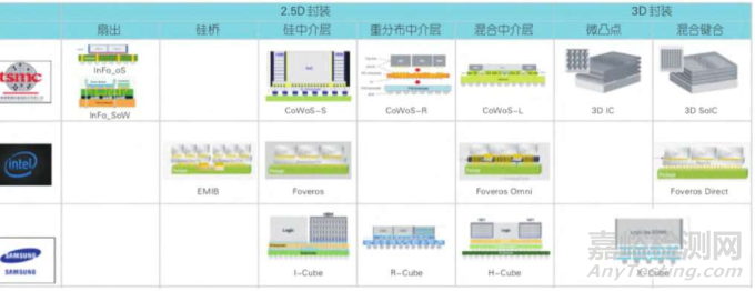 三巨頭 2.5D、3D 封裝工藝對照如下(附圖)