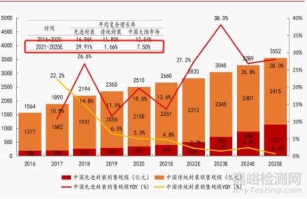 中國先進和傳統(tǒng)封裝規(guī)模趨勢分析如下(銷售口徑)
